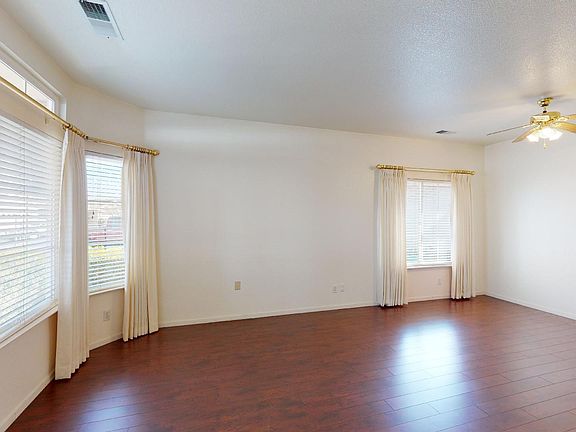 Available for your tenancy is this wonderful home located in Spring Crest gated community close to N. Walnut Rd and W Monte Vista Ave in Turlock. This living space at about 1,430 square feet at 3 bedrooms/2-bathrooms with separate living room/dining room combo, solid flooring throughout entire home, solid kitchen countertop, large kitchen counter bar space, free standing electric glass top range, microwave, indoor laundry closet, 2-car garage with power opener, and central heating & air conditioning.