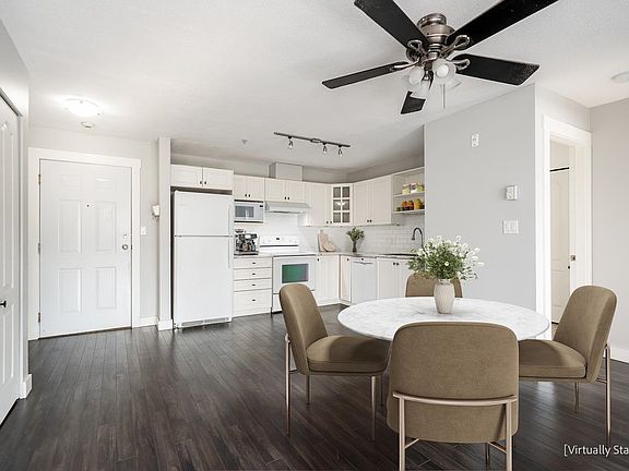 Open-concept layoutBedrooms on opposite sidesGenerously sized kitchenPlenty of cabinet spaceNatural lightCharming gas fireplaceEast-facing balcony