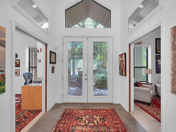 Nestled in the heart of St. Augustine, Florida, lies a charming abode awaiting its next chapter. This contemporary 4 BR/2BA custom pool home is located in one of St. Augustine's most established gated neighborhoods Oakbrook. Tree lined streets lead to this home tucked away in nature sitting on a large wooded lot (.51 acres) with mature trees and lush foliage. A captivating residence exuding both character and modern comfort. Step through the double front door into soaring ceilings, flanked by a library and an office overlooking the backyard oasis and the coziness of a wood burning fireplace. Open kitchen w/ 42-inch cabinets, ample storage space, pantry, food prep station & sunlit breakfast nook overlook a saltwater pool and lanai. Whether you’re hosting a soirée or preparing a quiet night of entertaining the telescoping sliding doors open all the way to invite outdoor covered sitting area seamlessly with the family room. Outside, the enchantment continues. Step onto the patio, where where a lush oasis awaits. Imagine sipping your morning coffee amidst the serene surroundings or hosting al fresco dinners under the stars. A huge 3-car garage with additional storage and workspace. Additional features include built-in plant shelves, a cabana bath, and a bedroom loft that the kids will love! Residence amenities include a clubhouse facility, community unheated pool, tennis courts, gated entry, baseball field and playground field. Myriad biking and walking trails throughout the neighborhood one will see turtles and families of deer. A surround of nature located in St. Augustine, the nation's oldest city, this home offers unparalleled access to an array of attractions and amenities. Explore historic landmarks, stroll along pristine beaches, or indulge in world-class dining and entertainment—all just moments from your doorstep. Low $75/month HOA fees. A 15-minute car ride to the beaches and historic downtown with shopping in between. Not just a home, but a lifestyle imbued with coastal charm and historic allure.