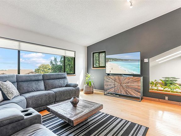 NEW PRICE!Updated, family-friendly, 3 bed/2 bath bright and inviting home situated in a private neighborhood near Oceanview Park. Features vaulted ceilings & great access to the fully fenced southwest-facing backyard, perfect for soaking up the sun on the deck & enjoying the covered hot tub. Recent upgrades include nice windows, roof and skylights, plus a newer washer/dryer. Inside, the main living area is warm and inviting with wood flooring & classic brick feature fireplace. Enjoy views of the mountains from your living rm & landscaped yard. Updated kitchen, w/timeless white shaker cabinetry, wall oven, built-in microwave, & cooktop will inspire any home chef. The primary bedroom includes a walk-in closet & a beautifully renovated 3-piece ensuite w/heated tile flooring. Flex rm on the lower level + workshop and loads of driveway parking. Easy access to the stand-up crawlspace for storage. Modern conveniences, schools, and shopping are all close by!