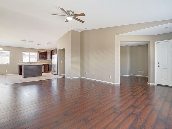Beautifully maintained Goodyear home located in Las Brisas Subdivision. A quaint single level, 3 bed, 2 bath property found a few feet from a plush green grass park. Searching for a bonus room or office...we have one! This 2012 Taylor Morrison house includes an open floor plan with sleek wood laminate flooring throughout, a perfect master suite topped off with shutters. You'll love the gorgeous eat in kitchen welcoming all to congregate. Generous size lot, large backyard, added pavers with a shaded covered patio to enjoy! Waiting for a great buyer to call this gem home, come see it today!!