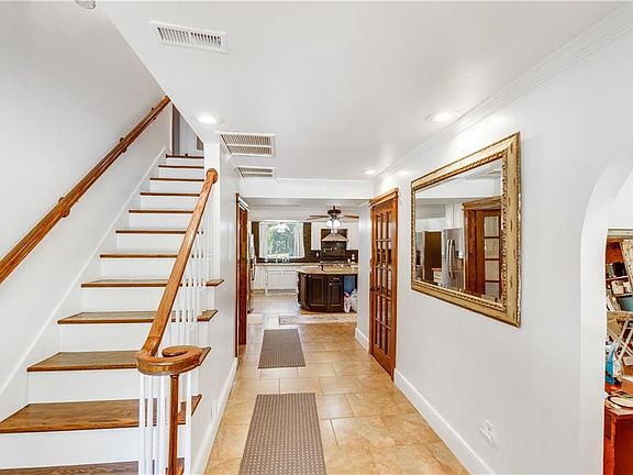 Welcome home to your private nearly 5-acre country estate in highly sought-after West Mobile! Tucked away just minutes from shopping, dining, and schools—located off Schillinger Rd. and only 1.5 miles south of Cottage Hill Rd.—this secluded retreat offers a perfect balance of convenience and tranquility. From the long winding drive lined with over 30 swaying palms to the sparkling saltwater pool and spring-fed pond, this property feels like a resort. Wildlife is abundant—deer, fox, rabbit, and waterfowl make daily appearances—yet you’ll never sacrifice proximity to the city. This spacious 4-bedroom, 3.5-bath home has been lovingly updated and remodeled. Recent upgrades (2022–23) include: A/C unit, splits, pool pump, new roof on home and garage, interior/exterior paint, remodeled bathrooms, updated kitchen cabinets, Generac whole house generator, and new 6-burner gas range with stainless hood. Step through custom mahogany double doors into a bright foyer, flanked by a flexible space ideal as a dining room or library with custom built-ins. Stained woodwork, detailed trim, and abundant cabinetry are featured throughout. The main-level primary suite offers trey ceilings, pond views, dual closets, and a fully renovated spa-like bath with dual vanities and a massive walk-in tile shower with multiple shower heads and built-in bench. The gourmet eat-in kitchen is truly the heart of the home. A wide granite island with hammered copper prep sink provides seating, storage, and houses the ultra-quiet dishwasher. Enjoy dual refrigerators, new gas range with pot filler, custom cabinetry, and a deep farmhouse sink overlooking the pool. A cozy brick fireplace and mahogany French doors lead directly to the patio and pool area. Nearby, the den offers a second fireplace, built-ins, and brick floors, all kept comfortable year-round with additional A/C splits. Upstairs are three generously sized bedrooms, two full baths, ample closets, and charming window nooks overlooking the grounds. The outdoor living is equally impressive: a saltwater gunite pool, patio, and a stone outbuilding (wired and plumbed) ready to be converted into a pool house. The two-car garage includes an unfinished apartment above and is attached to a massive two-story workshop with a commercial-grade bay door—ideal for storage, a home business, or hobby space (measures 55' x 23'). Additional outbuildings include a Barn or Workshop 2 (measures 20' x 30' with sliding barn doors, concrete floor, electrical) and stalls/ sheltered livestock area-perfect for horses, farming, or equipment. With a spring-fed water source, cleared acreage, and no HOA restrictions, this property offers endless opportunities. Whether you envision a family farm, equestrian estate, home-based business, or simply a private retreat, this property is ready to bring your dreams to life. Schedule your private tour today and experience this one-of-a-kind oasis in West Mobile!