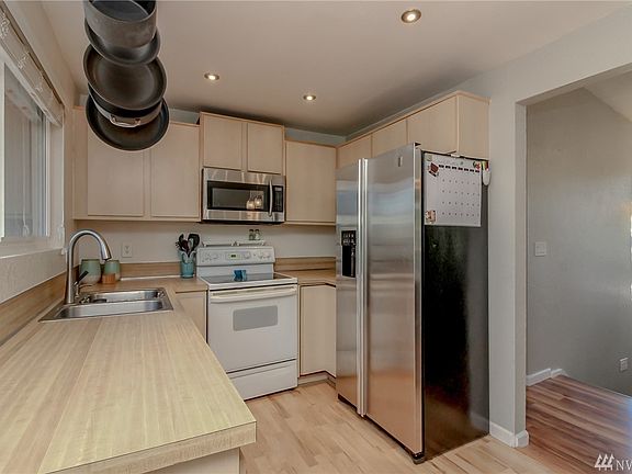 Fantastic Federal Way home in a park-like setting... LITERALLY! Backs to beautifully renovated Wedgewood park! Open concept living, dining & kitchen boasts laminate floors & vaulted ceilings. Spacious bedrooms incl. master w/updated tile bath. Downstairs offers huge family room, laundry & 1/2 bath. Newer Nest controlled 96% high efficiency furnace & AC + HE heat pump H20, PLUS NEW ROOF before closing! Giant deck & generous patio to your fully fenced yard, RV parking too. Just mins to amenities!
