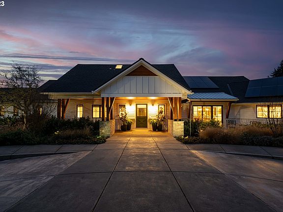 Nestled on nearly 10 acres, this masterfully crafted residence, designed by Arbor South and built by Mieli Construction, offers unmatched luxury. Enjoy breathtaking valley and Coburg Hills views, providing a picturesque backdrop for an extraordinary lifestyle.Step into the heart of this architectural masterpiece with a modern farmhouse kitchen featuring quartz counters, Sub-Zero fridge, Miele dishwasher, farm sink, and WOLF ovens. The great room boasts exposed beam vaulted ceilings, hardwood flooring, a stone gas fireplace, and seamless access to outdoor living.The main-level Owner's Suite offers a relaxing sanctuary with stunning views, a custom rain shower, elegant tilework, and a spacious walk-in closet. A connected workout room includes an additional full bath and sauna. Additional main-level features include an ensuite bedroom, a den with built-in desks, and extra living space with a sleek gas fireplace.Upstairs reveals another modern farmhouse-style bedroom, a full bath, and a charming bunk bedroom. Premium air filtration and app-controlled HVAC ensure optimal comfort. The property showcases close-in country living with a Accessory Dwelling Unit, RV Garage-insulated & heated, Greenhouse, Shop, and Barn. Solar panels enhance energy efficiency, and the fully fenced grounds feature a security system and a sophisticated well system. Outdoor living is an art form with a landscaped yard boasting a swimming pool, an outdoor kitchen with heaters, a fireplace, granite counters, a grill, a fire pit, and a sports court with a putting green, trampoline, and basketball/pickleball court. This residence transcends ordinary living, offering architectural excellence, technological innovation, and an idyllic setting on nearly 10 acres of prime close-in country property. Embrace the pinnacle of luxury living in this exclusive estate, where every detail is thoughtfully curated for the discerning homeowner. 2025-05-02