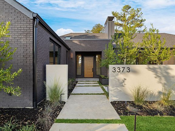 This extraordinary single story new construction sits on a prime corner lot mere steps to Brookhaven Golf Course. With soaring ceilings, clean lines, modern finishes, chef's kitchen, and wide planked hardwood floors, there is nothing else like it on market. The large living area is the heart of the modern open floor plan, with an oversized linear open flame fireplace and industrial sliding glass doors that lead to both a peaceful landscaped courtyard with large fire pit, and a patio with an outdoor kitchen & landscaped pool sized yard. A light filled study or flex room overlooks the courtyard, while the kitchen is complete with expansive island, custom Bellmont cabinetry, prep kitchen, huge pantry, quartz counters and backsplash, and a SubZero Wolf appliance package which includes double ovens, builtin fridge, wine column, ice maker, two dishwashers, double faucets, and a 48in 6 burner stove with industrial vent. The primary suite features backyard views, a standing tub, spa shower, dual sinks, and a generous closet complete with a stackable washer dryer hookup and huge mirrored vanity. The secondary bedrooms all have en suite baths with walk in showers with designer tile & skylights, and walk in closets. The bonus room is sized perfectly for a golf simulator, home gym, or second office. The utility room features tons of cabinets & space for full size WD. The covered patio has radiant heaters, gas grill & sink. Epoxied oversized 3 car garage, 2 tankless water heaters, full foam insulation, and slab on grade foundation with 70 piers. Included in the sale is 7 years of tax rebates- the Farmers Branch property tax rebate is an economic development grant equal to the difference between the City property taxes assessed and paid on the new improvement value and the assessed value prior to the demolition.