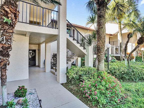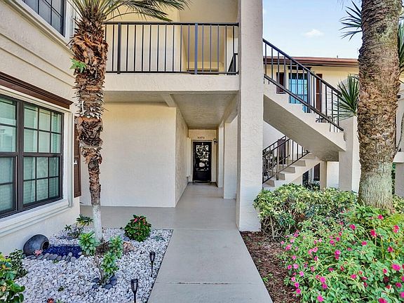 This listing contains virtually staged photos. Welcome Home to Park Pointe! This charming 3-bedroom, 2-bathroom first-floor condo in the desirable 55+ community of Park Pointe in Greenacres is completely move-in ready!As a corner unit with nearly 1,400 sq. ft., this home is filled with natural light and offers a wide lake and fountain view that can be enjoyed from your spacious, screened-in patio. The kitchen features an eat-in area, updated cabinets, and mostly stainless steel appliances. Inside, the home has been meticulously maintained and offers a bright, open feel throughout. Additional features include a 2021 A/C unit, Square D electrical panel, and in-unit washer/dryer hookups conveniently located in a hall closet.Parking is easy with one assigned spot right in front of the building, two vehicles are permitted per unit. A new roof (2022) provides added peace of mind.