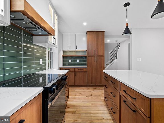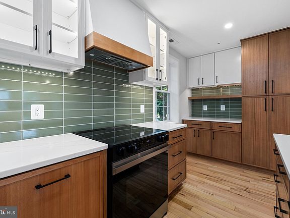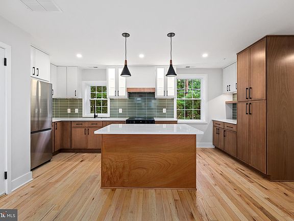 Welcome to this expanded, modern home in Fairlington; another stunning Braddock model conversion from CDT. An imaginative, open-concept design captures the eye with hardwood floors flowing from the generous living room to the kitchen, which features Scandanavian-style finishes with wood and white cabinets, green-accented tile backsplash, and quartz countertops. A kitchen island and coffee bar elevate this kitchen to an unprecedented level. Natural light from east-and-west facing windows keep a warm feel in the living areas, while dimmable, recessed lights provide ambient or bright options beyond sunset. A soothing-green, ceramic tile wall, porcelain floor tile, wood vanity, and champagne-bronze fixtures adorn the main-level bathroom, just across the hall from a generously-sized bedroom with a walk-in closet. Hardwood stairs lead to more hardwood floors in the magnificent, upper-level expansion that includes a primary bedroom with cathedral ceilings, exposed beams and a dormer window that highlights the finishes. A luxury walk-in closet adjoins this room and allows for an organized, spacious option for clothing and other effects. Large-format, porcelain tile floors, a white-oak vanity, a glass-enclosed walk-in shower, and sleek, black fixtures continue the curated style of this home in the upper-level bathroom. A laundry space provides ultra convenience for the primary suite on this level. No corners are cut or penny spared with the unique overhaul of this home. In addition, amenities are plentiful in and around Fairlington Meadows with walkable pathways, scenic courtyards, a pool, sports courts, playgrounds, and the Fairlington Community Center nearby. Shirlington Village, the Bradlee Center, Fairlington Centre, and the Alexandria Gateway offer fantastic restaurants, shopping, and entertainment options, all within walking distance. For commuters, Route 7 and I-395 are immediately adjacent for travel and a neighborhood Metrobus line, with a stop just steps from the home, connects quickly to the Pentagon rail station and other parts of the DC/NoVa area. For biking, walking, and exercise options, the Fairlington Community Center and the W&OD and Four-Mile Run trails are nearby.