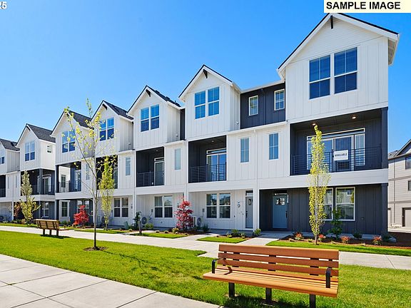 Brand New Luxury Townhome Community, Located in South Hillsboro with Prices starting at $419,500. The Berkeley plan offers 2 bedrooms, a large Bonus room/office with w/closet, 2.5 baths, huge kitchen island + walk-in pantry and 9' ceilings. Standard Features include quartz counters & under-mount sinks in kitchen AND bathrooms, black matte hardware, lighting fixtures & faucets, stainless steel appliances, soft close doors & drawers at all cabinets and wide plank laminate hardwood flooring on entire main level. Stay warm in the winter with electric heat pump that will also keep you cool in the summer! The primary suite has vaulted ceiling, walk-in closet, walk in shower, dual sinks and more. The second bedroom is large and has its own private bathroom. The home has a one car garage, a covered deck off the great room, plus a covered porch on the ground level. Fantastic green-space views! Taxes TBD. Includes AC and Blinds. Pictures of a similar home & virtually staged. Actual home has White Cabinets and White Quartz counters. Model home is open Friday-Tuesday, 11-4. Closed Wed 7 Thurs. Come tour 3 decorated models, located at corner of SE White Oak & SE Everwood. https://listings.ruummedia.com/sites/gepwwjz/unbranded. Home will be Move in Ready Mid December 2025 [Home Energy Score = 9. HES Report at https://rpt.greenbuildingregistry.com/hes/OR10226152]
