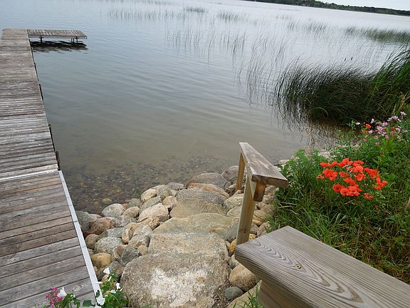 Buchanan Lake home: Spacious lot with just a few steps down to nice frontage,(a few reeds but hard sand), a swimming area, and excellent fishing. This 2008, 5 bedroom home has all the comforts your looking for! Open floor plan, 2 gas fireplaces, master suite, finished lower level with large family room, hickory kitchen cabinets, oak flooring, vaulted wood ceiling in great room, outdoor speakers on front porch and lakeside deck, and attached 3 car garage. Efficient geothermal heat with propane forced air backup. A great value for this beautiful lake home!