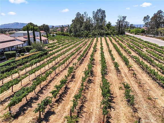 The perfect property for the wine enthusiast with commerical potential! This custom-built mission style home is nestled in the heart of Temecula Valley Wine Country. The main house offers 3 bedrooms, 3 baths, beautiful custom wood flooring throughout with stunning wood vaulted ceilings. Large great room, with fireplace, with several French doors leading out to the beautiful front porch and rear yard. Open kitchen with custom counters large sitting bar to entertain your guests. Relax in the main bedroom which has custom real wood floors, wood vaulted ceiling and plenty of natural lighting. The guest bedroom has a bonus loft with a jack n jill bathroom. 3 car garage with epoxy floors. One garage has been converted into an additional bedroom with a private bathroom and side door entrance. The second building is a boutique winery with over 1200 sq ft. It includes counters, sink, air conditioning and commercial refrigeration with cold room and storage for 1200+ bottles and large doors for easy access. All wine making equipment to start a boutique wine business or for your personal enjoyment to share with friends and family. The third building is an additional 2 car garage with roll up doors and cabinets. The property is just over 2 acres with 1.5 acres planted with 40-year-old established vines. 75% Cabernet Sauvignon and 25% Sauvignon Blanc which is being managed currently by a local winery. Plenty of room for the R.V and toys. Close to everything, schools, shopping and of course our famous Temecula Valley Wineries.