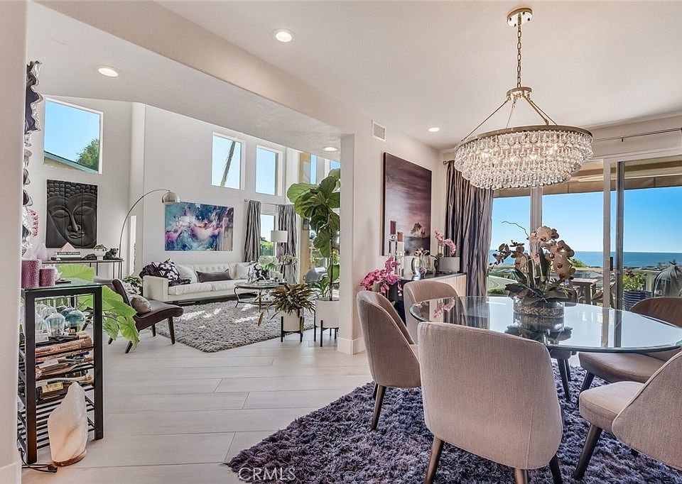 Welcome to Lantern Village, Dana Point. Unobstructed views, of Catalina Island, Coastline, the Pacific Ocean and never- ending sunsets. Breathtaking floor to ceiling windows provide a stunning impact of light and water in all seasons. Directly across the street from the coveted Strands beach preserve and easily accessible to the downtown area, shopping, farmer's market, entertainment and nearby Dana Point Marina. 33737 Chula Vista has experienced a complete renovation and will not disappoint at 3,167 sq. ft, 4 bedrooms and 3.5 baths. The open main living floor plan includes living room, dining, a stunning custom glass tile surround, fireplace for intimate gatherings, gorgeous silk Dupioni drapes. The chef's kitchen with a 10ft tailor-made Dolomite stone which resembles marble but more durable island houses a Thermador dishwasher, Viking microwave and well thought out storage. Italian custom laminate gloss cabinetry, unique Italian overhead pendents, Sub Zero 42" refrigerator, Wolf six burner range and GE Monogram Chef's double oven. Perfectly layered for an extraordinary experience as a guest and superb high end efficiency as Chef, while maintaining the beach-living lifestyle. The dining room displays Vintage wallpaper from the UK, Italian chandelier, ocean view and sliding doors to the outdoor deck. The lower level encompasses an oversized game/media room with glass tile fireplace, wine room, full bathroom and office/bedroom. Sliding doors lead onto a peaceful patio ocean view retreat. The private quarters on the second level offers three bedrooms, two modernized bathrooms. The primary suite with ocean views offers custom wall paper from Graham & Brown, a spa bathroom retreat; including soaking tub, floating cabinetry, oversized marble shower and a walk-in closet to create a Zen environment. Newly installed HVAC system and CitySide Fiber internet . Come make this beautiful, beach retreat your sophisticated home for all multi-family needs and Dana Point luxury your coastal destination.