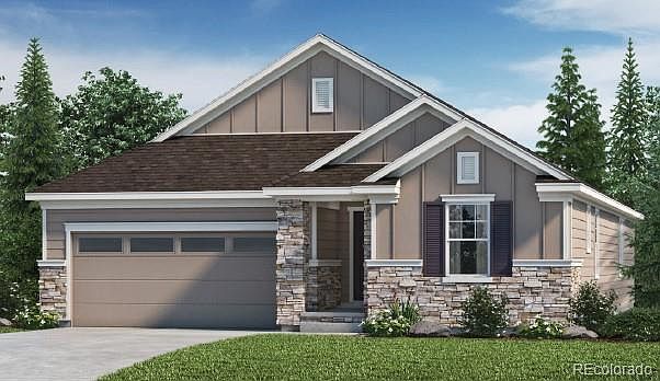 Welcome to this brand new, charming, ranch-style home in the Sweetgrass community.With its open floor plan and modern upgrades, this 3 bedroom residence provides an inviting atmosphere for families and entertainers alike and is the perfect blend of style and comfort. Inside, the living room, dining area and kitchen are seamlessly connected and bathed in natural light from the abundance of large windows. The kitchen is outfitted with stylish quartz counters and a sizable island to provide ample space for meal preparation or entertaining and the stainless steel appliances, including a gas range, make cleaning a breeze. The primary bedroom suite offers a peaceful retreat with its generous size, plush carpeting, and an en-suite bathroom for added privacy. Two additional bedrooms provide versatility for a growing family or guests and the spacious den makes a perfect office or kids play room. This home also comes with a full unfinished basement and an extended garage, offering an extra 4 feet in length for trucks with extended beds and/or additional storage. Outside, an attached covered deck enables you to enjoy the outdoors under shelter, but you'll still enjoy plenty of room in the yard for pets, barbecues, gardening or playing. Sweetgrass also provides easy access to local amenities, schools, parks, and shopping centers and is within a mile of I-25 for convenient commuting. Don't miss this incredible opportunity to own your dream home. Schedule your showing today and experience the comfort and potential this property has to offer! Move-in-ready November 2023. The Listing Team represents builder/seller as a Transaction Broker.