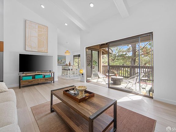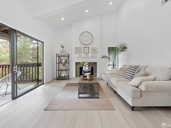 Exquisite top-floor end unit in San Carlos with pool views! This beautifully remodeled 3-bedroom, 2-bath condo offers the feeling of a woodland retreat with all the comforts of modern living. The light-filled living room features vaulted ceilings and a cozy fireplace, while the open floor plan is anchored by a modern kitchen with expanded pantry and premium appliances. The spa-inspired primary suite includes new counters, vanities, and premium fixtures, with a generous attic above the closet for extra storage. Throughout the home, new luxury vinyl plank flooring and plush carpeting create a refined atmosphere. Community amenities include swimming pools, tennis courts, and a clubhouse. Ideally located minutes from Crestview Park with playgrounds and sports courts, as well as downtown San Carlos, top-rated schools, shopping, dining, and hiking. A rare opportunity to own a move-in ready home that blends views, style, and convenience in one.