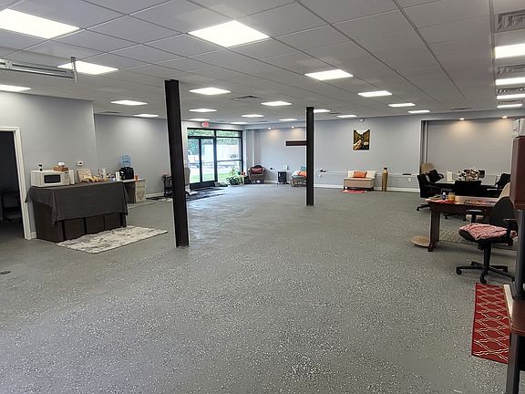 Existing small officeFinished wallsGreat retail spaceAsphalt parking lotNatural gas heatTiled floorDropped tiled ceiling
