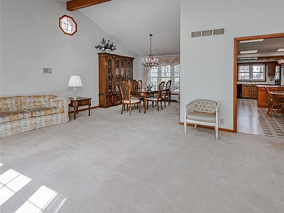 This Spacious, one-owner well-maintained split-level home offers 3260 SF of comfortable living space and sits on a beautifully Landscaped Lot, just shy of a 1/2 acre. Great curb-appeal with a Circular Drive in addition to an Extended Driveway Plus a New Roof in April 2025! The Rear Entry X-Lg Garage features a updated Garage Door and Floor, plus a Staircase to the lower level. Spacious 5 bedrooms, 3 full bathrooms, and a Dedicated Office w/ Built-In Shelving, perfect for working from home OR convert to a First Flr Bdrm for an added Living Suite. In addition, a Family Rm, Vaulted Living Rm, Dining area, Eat-in Kitchen, and Rec Rm. Hardwood Floors under all the carpet throughout the living & dining areas, stairway, hallway, and first three bedrooms, including the primary. The Primary suite boasts a Private Balcony/composite deck, offering a peaceful retreat. The Sizable kitchen provides ample cupboards and counter space, ideal for cooking and entertaining, and complete with a large Indoor Grill with a separate exhaust fan Plus Double Ovens! Step into a cozy Family Room with/ a wood-burning Fireplace/gas starter and sliding doors to a beautiful Three-Season room leading to a Large Patio. This home is perfect for large gatherings and entertaining! Two furnaces and A/C units/ zoned heating and cooling, updated double-paned windows and a central vac system. Sprinkler system in both front and back and a lofted two-level outbuilding for storage, hobbies, or creative space. Freshly mulched-