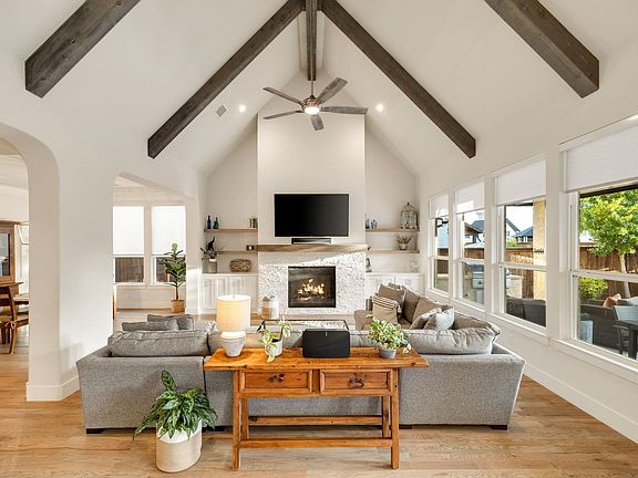 Welcome to this stunning 5-bedroom, 5.1-bathroom home located in the highly sought-after master-planned community of Light Farms. Thoughtfully designed with light, bright finishes and an open-concept layout, this home is perfect for both entertaining and everyday living. Soaring vaulted ceilings, a cozy fireplace, and walls of windows bring warmth and natural light into the main living area, which flows seamlessly into the kitchen, breakfast, and formal dining spaces. The kitchen is a dream with custom cabinetry, an oversized island, and elegant finishes throughout. The spacious primary suite features a private coffee bar and built-in cabinetry leading into a luxurious en-suite bathroom with a soaking tub, walk-in shower, dual vanities, and generous closet space. A second bedroom with a private en-suite bath is located downstairs, offering ideal guest or multigenerational accommodations. Step outside to your own private oasis—an expertly designed backyard retreat complete with a sparkling pool, spa, tanning ledge, tranquil water features, outdoor shower, covered pergola with built-in lighting, and built-in grill area. Surrounded by lush landscaping and privacy trees, this space is perfect for both relaxation and entertaining. Located in the heart of Light Farms, residents enjoy access to resort-style amenities including miles of hike and bike trails, multiple community pools including a junior Olympic pool, a state-of-the-art fitness center, tennis and pickleball courts, basketball and sand volleyball courts, bocce ball, a private lake, an on-site elementary school, and The Nook, the neighborhood’s own restaurant and market. With community events, Light Farms offers a vibrant and connected lifestyle like no other.