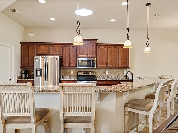 Welcome to Venetian Bay, a vibrant and unique community offering miles of scenic walking and biking trails, a charming town center, and a premier golf course. This immaculate 3-bedroom, 2-bathroom home showcases exquisite upgrades and a thoughtful layout designed for both comfort and style. Step into the bright, open-concept living area, where tile flooring seamlessly spans the main living spaces. The kitchen boasts granite countertops, stainless-steel appliances, and an abundance of cabinetry—perfect for any cooking enthusiast. A spacious primary suite features a huge walk-in closet and dual vanity sinks, ensuring a tranquil retreat. The remaining bedrooms are well-sized, offering flexibility for family, guests, or a home office. Beyond its stunning interior, this property’s exterior shines just as brightly. The big driveway and attached garage provide ample parking and storage, while gutters help safeguard the home. The covered and screened lanai is an ideal spot to unwind, overlooking the beautifully landscaped yard that delivers both privacy and curb appeal. Enjoy grilling in the serenity of your backyard with no rear neighbors. Travel and commuting are a breeze: Daytona Beach International Airport is about 17 miles/25 minutes away, while Orlando International Airport is roughly 60 miles/1 hour. Commuters will love the 3-minute hop to I-95 via SR-44 (Exit 249) for quick connections north, south, or west toward Orlando. Situated near Venetian Bay’s abundant amenities, you’ll have easy access to outdoor recreation, community events, shopping, and dining—all within a stone’s throw of your doorstep. Don’t miss this outstanding opportunity to experience the best in Venetian Bay, a home that truly has it all.