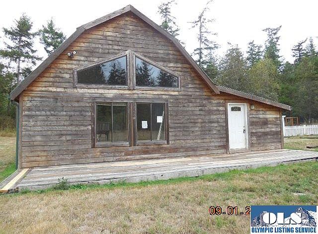 Rustic cabin in the woods is waiting for someone to call it home. Cute and quaint cabin with one bedroom and 3/4 bath. Ground level deck in front hosts the front entry which opens into the mud/laundry room area. This leads to a vaulted ceiling in living room and lots of exposed wood through out the home. Den/office area off living room leads into roomy bedroom and then onto a 3/4 bath. Kitchen is small but user friendly. Exterior has fenced in animal pen for pets and a useful outbuilding for storage.
