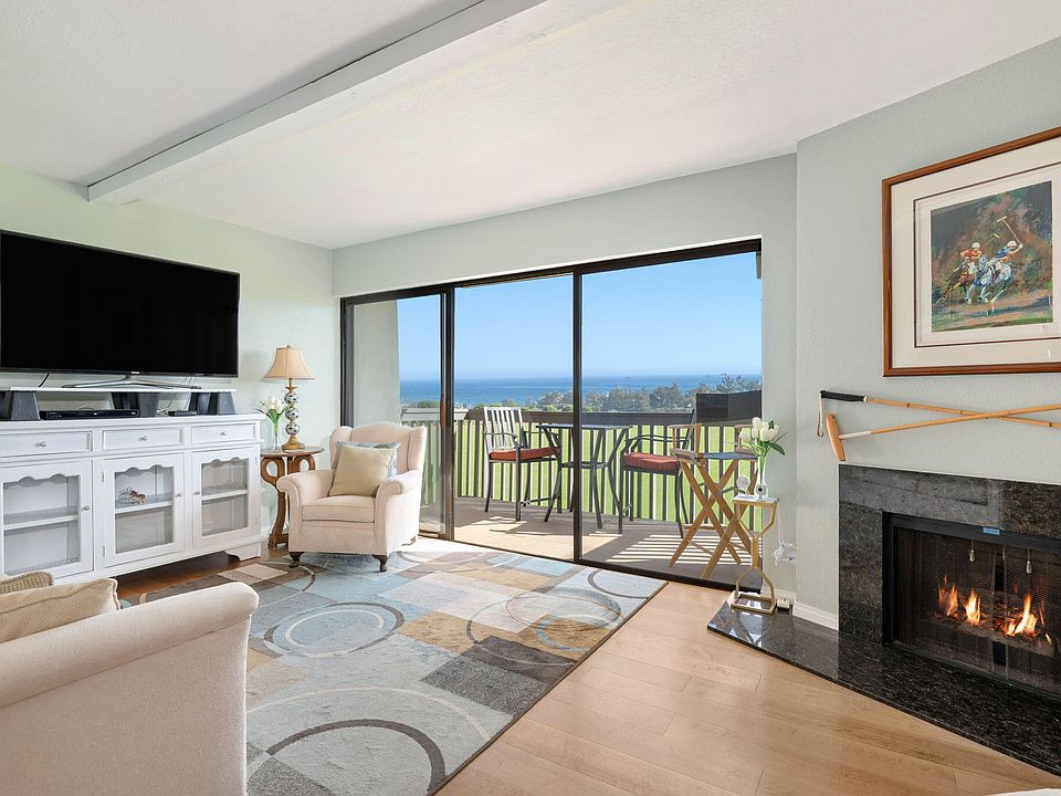 Enjoy stunning ocean and sunrise to sunset views, as well as front-row seats from your balcony to world-class polo at the Las Canchas ''polo condos''! This beautifully upgraded and light-filled one bedroom condo features the timeless style of rich maple floors and custom curly maple kitchen cabinetry. Other amenities include dual sinks in the bathroom, a cozy fireplace and a spacious south-facing patio deck, creating the perfect setting for a relaxing California lifestyle. The excitement of the annual May-October polo season followed by a tranquil fall and winter months. The community offers a sparkling pool and a prime location just minutes from Montecito and Summerland—perfect for coastal living at its finest. Available fully furnished!