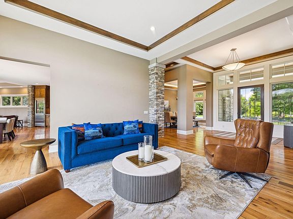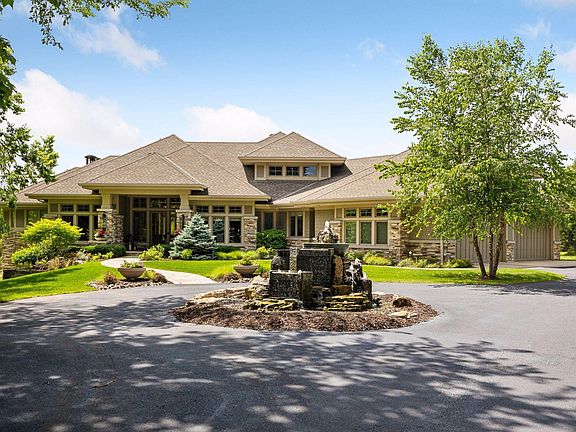 Incredible custom-built home on one of the finest sites in Orono’s high-demand estate neighborhood, Graham Hill Preserve. Thoughtfully designed floor plan with beautiful prairie-style architectural details, including floor-to-ceiling windows throughout the home, showcasing the stunning natural retreat-like setting with panoramic treetop views. The main level features an owner’s suite with a see-through fireplace and spa-like bath, a stunning chef’s kitchen, a vaulted living room with beautiful built-ins and a stone fireplace, a sunroom with a see-through stone fireplace and wood-paneled vaulted ceiling, a formal dining room with a built-in buffet, and an office/den with a wall of built-ins. The walkout lower level highlights a media room, billiards/game room, full bar, impressive 1,900-bottle wine cellar, three bedrooms, a spacious room under the garage for exercise or recreation, a custom-built cedar closet, and a pool mudroom with a half bath and laundry. Upper-level flex room/bedroom with a ¾ bath. The private 2.39-acre property offers outstanding outdoor entertainment spaces for all to enjoy. The fenced-in backyard includes a pool, cabana with Wolf grill, expansive patio, sunshade, fire pit, deck overlooking the pool, and covered grill deck. Recently completed guest house with similar finishes and quality as the primary residence. Six heated garage stalls with dog wash and phantom screens. Elevator. Savant system. Neighborhood amenities include a tennis/pickleball/basketball court, ice rink, warming house/gazebo, fire pit, walking paths, and access to the Luce Line Trail. Award-winning Orono schools. Guest house and storage/exercise/recreation room under garage are not included in finished square footage or bedroom/bathroom count.