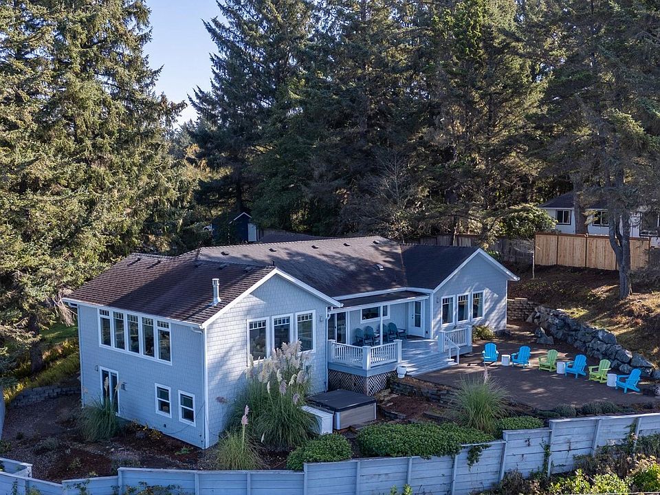 Perched above Netarts Bay with 180° panoramic views stretching from Cape Lookout to the iconic Three Arch Rocks in Oceanside, this one of a kind bay front home is sure to impress. Designed to capture every angle of the Pacific Northwest’s coastal beauty, this property seamlessly blends high-end finishes, thoughtful upgrades and unmatched views into one stunning package. Step inside to discover a warm and inviting open living space with engineered French Oak hardwoods and tongue-and-groove ceilings. The tastefully updated chef’s kitchen is a masterpiece with Hestan dual fuel range/oven, Bosch speed oven, Fisher & Paykel dual drawer dishwasher, large island, quartz counters and full height quartz backsplash. The master suite offers sweeping bay views and a spa-like bath complete with heated floors, steam shower, soaking tub with bay views, heated towel rack and premium Brizo fixtures. Relax outdoors on the expansive patio or soak in the hot tub overlooking the bay and ocean horizon. This bay front property also includes a thoughtfully designed 2 bed / 1 bath detached ADU offering flexibility for guests, extended family, or potential rental income. Complete with boat / RV parking and a wealth of other amenities and upgrades including a whole-home Generac generator, AdvanTex septic system, updated furnace, tankless water heater and new plumbing, this property presents a rare chance to own one of Netarts’ most breathtaking vantage points, seamlessly blending modern luxury with the beauty of nature!