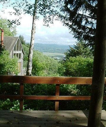 Ocean and River view Cascade Head Pole House. Unique woodsy interior, large deck and covered porch with loft bed room and floor to ceiling windows. Private setting across from the Sitka Center. Watch the elk and deer, wildlife and majestic evergreens from your ultimate beach house on the Oregon Coast. Includes boat storage and beach access, great kayaking and nature trails abound!