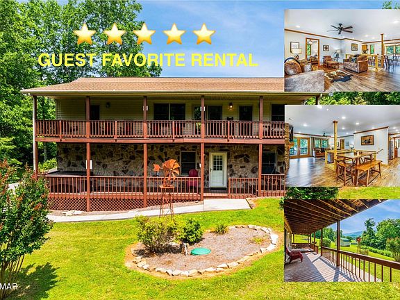 Great opportunity to even enhance this active rental by adding a pickleball court, indoor pool area, or more. The Seller is even willing to negotiate siding changes to log, for added charm. Currently high star ratings without being pet friendly don't miss this investment opportunity in the heart of highly desirable Wears Valley—just minutes from Pigeon Forge, Sevierville, Gatlinburg, Dollywood, and the Smokies. Set on 1.39 acres with stunning Cove Mountain views, this 3-suite home offers privacy, convenience, and currently high star ratings. Updates include new flooring, paint, furnishings, fixtures, TVs, and a fully updated kitchen with granite and stainless appliances. A game room, bunk area, and finished basement with second kitchen make it stand out and family-friendly. Two expansive decks showcase peaceful scenery, while the two-car garage and spacious lot provide flexibility for outdoor living or future expansion. With quality upgrades, a premier location this property is a rare find.