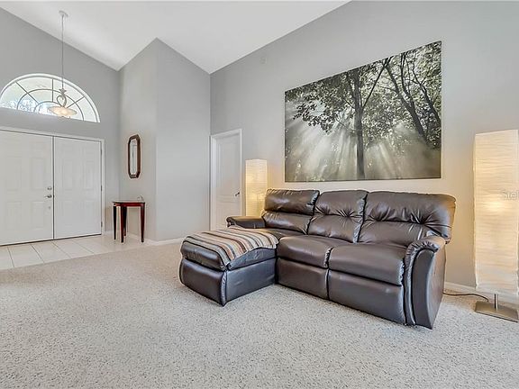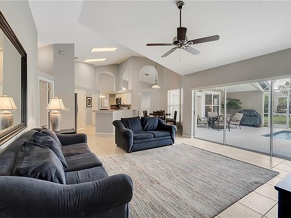 Located in the sought after Hunter's Creek area, this 4 bedroom 3 bath sits on a cul-de-sac lot and has been freshly painted on both the exterior and interior. This open concept, three way split home boasts soaring ceilings throughout with both a formal dining room adorned with a chair rail and a formal living room providing sliding glass door access to the screened in pool area. The kitchen features stainless steel appliances, a closet pantry, an abundance of cabinet and countertop space, and overlooks the family room that also has access to the outdoor living space through sliding glass doors. The master suite boasts two walk in closets and an en-suite bath with 2 separate vanity areas, a walk-in shower, and a garden tub. The 3 remaining bedrooms have wood tile flooring and ceiling fans and are split making one the perfect guest area with full bath. Enjoy entertaining in the screened-in pool area and grassy backyard space. Conveniently located near great shopping, dining, and major roads.