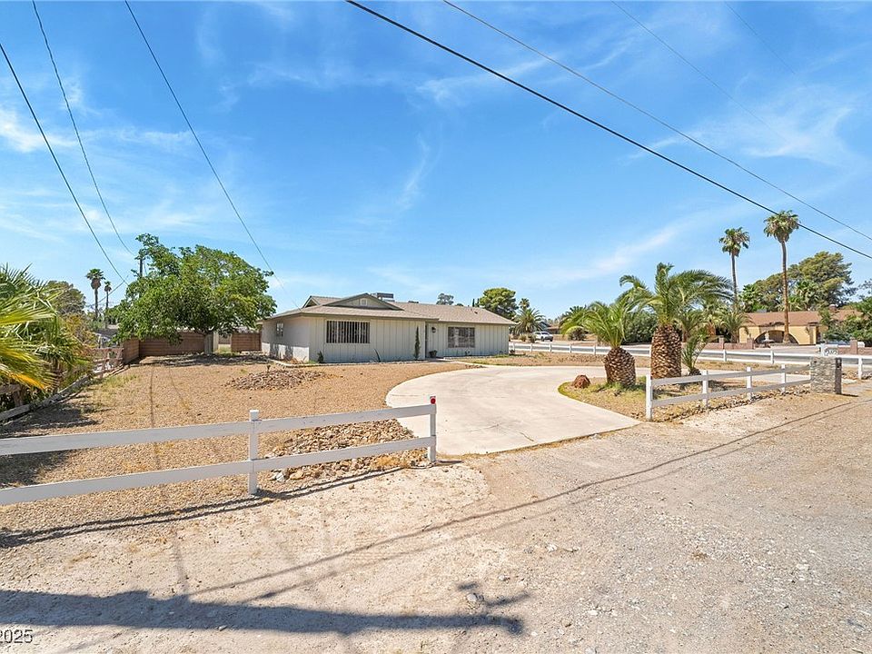 Welcome to this beautifully upgraded single-story home, situated on an impressive 20,038 sq ft lot. This spacious home features a circular driveway and a two-car garage, offering ample parking and convenience—plus the freedom of no HOA restrictions. Inside, enjoy brand new carpet, adding comfort & a fresh feel. The kitchen is warm and inviting, featuring oak-color cabinets & includes appliances. Bathrooms have been updated, including the plumbing for peace of mind & long-term functionality. Updates include a newer AC system & roof, offering energy efficiency & reduced maintenance concerns. Step out to the backyard to enjoy a large covered patio and a blank canvas, offering endless possibilities—add a pool, garden, or create your own outdoor oasis. There's also a storage shed & double gate for easy access & functionality. This move-in ready property offers space, updates, & versatility on a rare oversized lot plus only 2mi South of Allegiant—don’t miss your opportunity to make it yours!