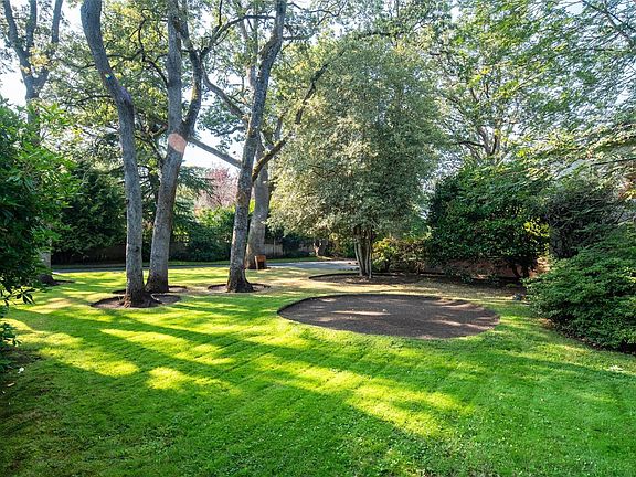 Leaded glass diamond-paned windowsInlaid hardwood floorsNatural lightMature landscapingGenerous backyardPrivate park-like setting