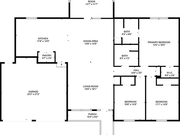 Vaulted ceilingsLarge great roomMini barn storageNew garage doorsNew roofLaminate floorsOpen floorplan