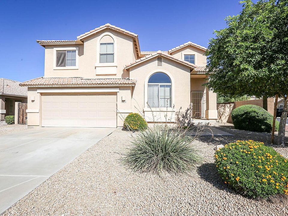 Don't miss your chance to see this incredible 4 bedroom / 2.5 bathroom home with a two car garage! Enter this home and notice the clean and comfortable look and feel of the interior which features brand new paint, carpet and vinyl flooring. The kitchen comes complete with a stove/oven, microwave, dishwasher, and a pantry. Study or work from your private den/office! The master bedroom includes walk-in closet and a private bathroom with a separate shower/tub and a dual sink vanity! Enjoy sunny Arizona in your enormous private fenced in backyard with desert and grass landscaping, pavers, a covered patio, RV Gate and a private pool! This home is conveniently located near restaurants, shopping outlets, Phoenix-Mesa Gateway Airport, and the loop 202 and State Route 87 freeway. Contact is to see this home today! $1595 Security Deposit $200 Admin Fee $45 Application Fee This unit/home is non-smoking. Pool service included. Bi-weekly lawn service included.