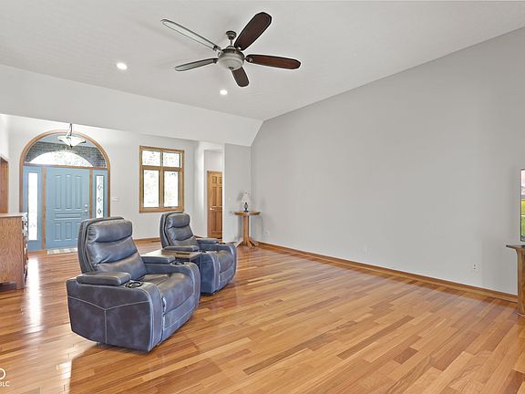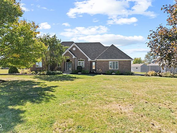 Welcome to your own little slice of quiet paradise! Nestled at 3377 E 100 S, LEBANON, IN, this single-family country residence in Boone County presents an attractive manicured 5 ACRE property in great condition. Ready for an executive family to add your family touches. The living room greets you with a vaulted ceiling, creating an airy and expansive atmosphere that invites relaxation and conversation, opening to the newer added sunroom. The kitchen has stylish backsplash, shaker cabinets, quartz countertops, and a large kitchen island perfect for meal preparation and casual dining, complemented by a high-end refrigerator, stovetop, and a wine cooler for effortless entertaining; the kitchen peninsula and kitchen bar offer additional seating and serving space. The primary bedroom is L-shaped, for a sitting room or possible "new baby" area and french doors off to deck. The master bath offers luxurious amenities, including a walk-in shower and a jetted tub, promising a spa-like experience within the comfort of your home. Two more bedrooms and a full bath on other side of home. This single-story home (with finished basement, 1/2 bath and large storage area) offers the convenience of entering from garage into a 7x22 mudroom and separate laundry room (with 1/2 bath), making household chores more manageable. The open floor plan enhances the sense of space and connectivity throughout the home; step outside to discover a patio, deck, and manicured backyard; offering the perfect setting for outdoor enjoyment and relaxation. You could ADD a pool, outdoor kitchen and even horses! To add to the flexibility of the home, there is a 30x60 Pole Barn and separate shed (Plenty of room for all your TOYS!). Additionally, the 2 car garage is polyurethaned. This Lebanon home promises an idyllic lifestyle, blending rural tranquility with modern comforts. This property is minutes from I65, Boone County Fairgrounds, downtown, shopping and the new Eli Lilly complex. Enjoy!!