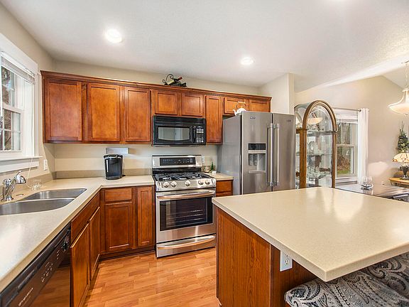 Meticulously maintained 2 bedroom 1 bath condo! An open concept great room welcomes you to this move in ready home. Well appointed kitchen with maple cabinetry, stainless steel appliances, solid surface countertops, and a walk in pantry! Kitchen is open to the dining area with laminate flooring. The living room boasts cathedral ceilings, recessed lighting and a slider to the back deck. Large primary suite hosts a walk in closet and private bathroom complete with a walk in shower. Convenient laundry room with wash tub! Second bedroom and second full bathroom complete this unit. Two stall attached garage for storage and parking. Conveniently located just minutes from shopping, restaurants, and highway access. Buyer to verify all information.