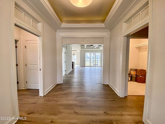 Welcome to the Plum Island II by Trusst Builder Group. As you enter the home you will be greeted by an open foyer. A guest bedroom and full bath are off a privacy hall to the left. Entry to the two-car garage and laundry room are off a similar hall to the right. Next you'll pass a third bedroom or office space that is just off the family room. The family room, has a coffered ceiling, fireplace, and built ins and is open to the kitchen with a gourmet prep and serving island. The dining room with illuminated tray ceiling overlooks the kitchen. Enjoy relaxing in the screened porch overlooking the pond. The primary suite is inviting with a sitting area, two walk-in closets and bath with double vanity, linen closet and zero entry walk-in shower. A spacious storage area in the garage adds extra convenience. Upstairs you'll find a fourth bedroom or flex space with walk in closet and full bath. Extras include surround sound in family room and screened porch, natural gas fireplace, wood ventilated shelves, front porch and more.