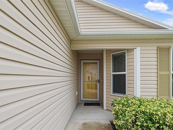 Welcome to this popular At Ease floor plan featuring 3 bedrooms, 2 bathrooms, and a 2-car garage. Designed with an open layout and volume ceilings, this home offers a bright and spacious feel throughout. The main living areas—including the living room, dining room, and kitchen—feature beautiful wood laminate flooring for easy care and style. Enjoy the comfort of an enclosed and tiled lanai, which faces the side of the home for complete privacy—perfect for relaxing with your morning coffee or entertaining guests. Thoughtful upgrades include crown molding, double-pane Low E windows, a front storm door, and gutters, adding both function and value. Located in a highly desirable area, this home is just minutes from Colony Shopping Plaza, Neighborhood Wal-Mart, and Brownwood Paddock Square, offering convenient access to shopping, dining, and entertainment. Don’t miss your chance to make this beautifully maintained At Ease model your next home in The Villages!