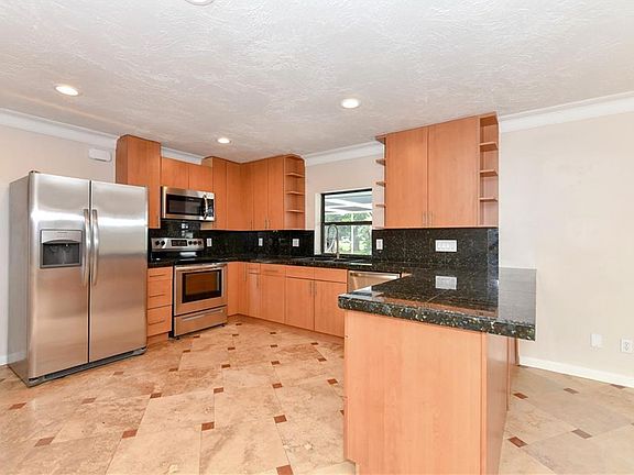 RARE OPPORTUNITY to own a stunningly REMODELED POOL HOME in the heart of Sarasota! Located on directly on the 12th hole of the Village Green Golf Course, this unique property showcases 3 spacious bedrooms, 2 gorgeously updated bathrooms, and a bonus room that can be used a den, office, or 3rd bedroom! This home features an open concept floor plan with rich travertine tile throughout the entire home. The gorgeous travertine continues out beyond the pocket sliding doors and onto the expansive pool deck, which offers privacy, spectacular golf course views, and a fully screened-in pool cage (re-screen 2018). The large kitchen was recently upgraded with granite countertops and backsplash, NEW garbage disposal (2018), and NEW stainless steel appliances (2018). The entire property received a makeover in 2018, starting with NEW exterior and interior paint, NEW light fixtures and can lights, NEW pool pump, the list goes on and on! Village Green Golf Club offers a variety of optional memberships to suit any level of play, pro shop, and restaurant. This unique community has an incredibly low HOA fee of only $50/YEAR and is centrally located to a multitude of Sarasota's best amenities. Nestled in the sought after Southgate neighborhood, this property is only 10 minutes from world renowned Siesta Key, downtown Sarasota, and I-75. This home is a MUST SEE!