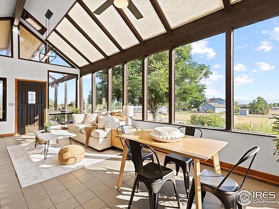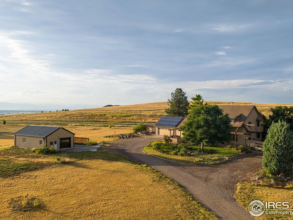 Welcome to this excellent custom home on 2 acres in coveted North Broomfield designed with efficiency, comfort, and style in mind with incredible mountain views. The 3,478 sqft main residence offers an updated kitchen with Jenn-Air oven & induction cooktop, warming drawer, built-in microwave, integrated dishwasher & refrigerator plus an extraordinary built-out pantry with sink that dreams are made of. Rich wood floors flow throughout the kitchen, dining area, and living room with a cozy wood-burning stove flanked by the gorgeous sunroom, perfect for year-round living. Tucked away on the main floor is a private office & half bath. Upstairs, the primary suite boasts a private balcony with sweeping mountain views, while two oversized bedrooms share a full bath. The fully finished basement includes a kitchenette, spacious living area with built-ins, large bedroom, spa-like bath and bright laundry room offering great storage.The property features thoughtful use of the southern exposure, owned solar panels, recently updated hot water heating system, forced air cooling and a low-maintenance tile roof all meant to maximize efficiency. Carefully curated, drought-tolerant landscaping offers drip & spray irrigation around the home, blending natural Colorado beauty with water-conscious design plus a large garden shed on the property. The 1150 sqft over-size deep 4-car garage plus incredible 800 sqft outbuilding with office and 3/4 bathroom, offer incredible versatility for your hobby or business needs. Conveniently located minutes from Broomfield amenities including Paul Derda Recreation Center & trails with incredible Colorado views and easy access to Denver, Boulder, and DIA, this home is the perfect blend of thoughtful design, efficiency, and opportunity.