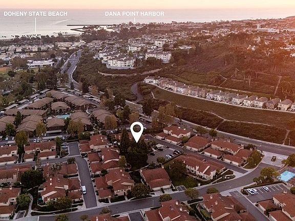 The best of Dana Point living! This former model home in Seaside Villas offers a prime location just minutes from Dana Point Harbor, Doheny State Beach, and local shops. The ideal end-unit sits adjacent to a large grass community open space, with guest parking nearby and convenient access to community amenities. A generous driveway welcomes you home to an extended two-car garage with extra storage, and entry gates open into a private patio courtyard. Inside, the light and airy layout begins with a formal living room featuring vaulted ceilings and a fireplace. The open plan flows into your formal dining space, and sliding doors extend to a private backyard enclosed by plant-lined walls. The kitchen is appointed with quartz counters, Shaker cabinets, stainless steel appliances, and a breakfast bar that opens to the family room, where additional sliding doors connect to the courtyard for easy indoor-outdoor living. The lower level is complete with a powder bath and a laundry/mudroom with LG washer and dryer and exterior patio access. Upstairs, all three bedrooms and two full baths are located on the same level. The primary bedroom includes vaulted ceilings and an updated en-suite bath with a chic tiled shower. Ceiling fans are installed in each room for everyday comfort, and storage is abundant with built-in cabinets upstairs, under the stairs, and in the garage. Recent upgrades include a new furnace and air conditioning, complete double pane window replacement, new water heater, and new hot water recirculating pump. The Sea Villas community features two pools, two spas, a clubhouse, and a BBQ area. This sought-after location is less than a mile from Doheny State Beach and Dana Point Harbor, and is close to the San Juan Creek Beach Trail, local transportation, and top-rated Capistrano Unified schools. Offering the perfect balance of a private sanctuary and vibrant beach-town energy, this home unlocks a coveted Dana Point lifestyle.