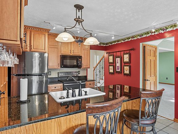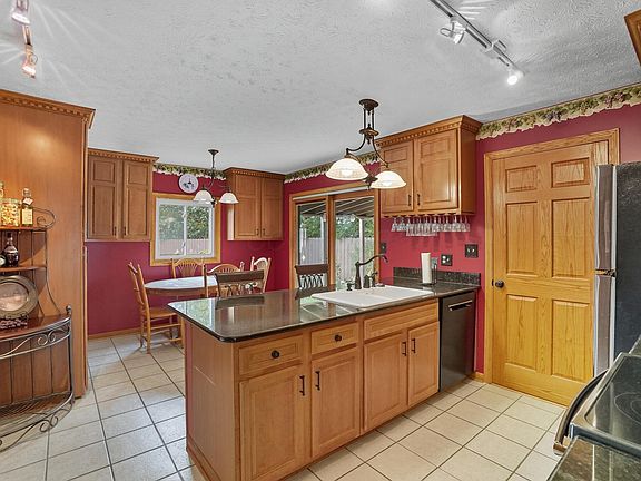 Well maintained Parkridge home is ready to move in! Freshly painted throughout in summer 2025, including the garage. All replacement windows/ NEW ROOF in 2024/ extra wide concrete driveway-new in 2022. A full covered front porch, with porch swing offers multiple seating areas overlooking this walkable neighborhood. Full glass Andersen storm door is one of the many features that are sure to please the discerning buyer! 6 panel doors and custom solid oak woodwork found throughout the home. Welcoming foyer opens to huge living/dining room where a wood burning fireplace will warm the fall evenings. A half bath is conveniently located near the main door. Ceramic tile flooring in entry and kitchen, which features granite countertop, deep double sink and a large pantry. An eat in are & breakfast bar allow for dining options, the covered patio is just outside of the kitchen. Appliances which convey with the home are stainless black. New carpeting though out the upper story in neutral colored. Spacious primary bedroom with access to bathroom. Three additional bedroom are generously sized. Finished rec room/family room in lower level. Tasteful landscaping is found outdoors, a small water feature makes sitting on the patio ultra relaxing! Perennial flowers are found around the lawn. Wonderful walkable Parkridge is located very near Gantz Park.
