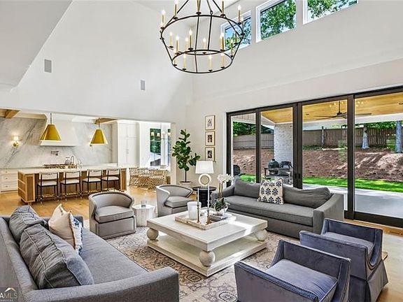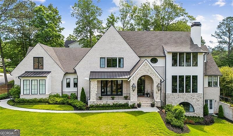 Completed in June 2023, this spectacular new construction residence offers refined luxury just steps from Silver Lake and the Brittany Club. Thoughtfully designed with stunning architectural details, the home features stacked stone accents, white oak floors, soaring ceilings, a dramatic two-story foyer, and expansive glass sliding doors that seamlessly blend indoor and outdoor living. Inside, the elegant arched entry leads into a grand central staircase, a formal study with fireplace and custom built-ins, a formal dining room perfect for entertaining, and a spacious family room with designer lighting and exquisite finishes throughout. The gourmet kitchen is a true showstopper, featuring a 10-foot marble island, full-height marble backsplash, La Cornue professional range, Sub-Zero refrigeration, and a generous walk- in pantry. Floor-to-ceiling windows in the breakfast area flood the space with natural light and frame beautiful backyard views. The main-level primary suite is a serene retreat, boasting a vaulted ceiling with white oak detailing, a cozy seating area, dual walk-in closets, an oversized shower with multiple heads (including a rain shower), and a freestanding soaking tub. Exceptional outdoor amenities include a large covered patio with grill area, a dedicated outdoor pool bath, and an inviting exterior fireplace - perfect for al fresco gatherings. Additional highlights: a three-car garage with ample storage, a built-in mudroom drop zone, and a secondary laundry room for added convenience. Experience unparalleled craftsmanship, sophisticated design, and a prime Brookhaven location in this one-of-a-kind luxury home.