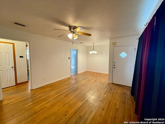 Move-In Ready Home in Highly Convenient Dellview Location! Welcome to this charming and well-maintained rental in the popular Dellview neighborhood-perfectly situated for quick access to Loop 410, I-10, USAA, the Medical Center, UTSA, Downtown San Antonio, and nearby shopping at Crossroads. This functional and flexible floor plan features original wood floors, 2 bedrooms, and an additional office or 3rd bedroom with its own half bath. The spacious living and dining areas offer plenty of room to relax or entertain. A large bonus room off the kitchen (converted garage) provides valuable extra living space-ideal for a second living area, game room, or flex space. Enjoy outdoor living on the covered patio overlooking a generous backyard with a storage shed. Additional perks include a carport and a new AC installed in June 2023.Located just minutes from Dellview Park, you'll have convenient access to the public swimming pool, walking paths, playground, and other community amenities. Come see why this Dellview rental offers comfort, convenience, and space in an unbeatable location!