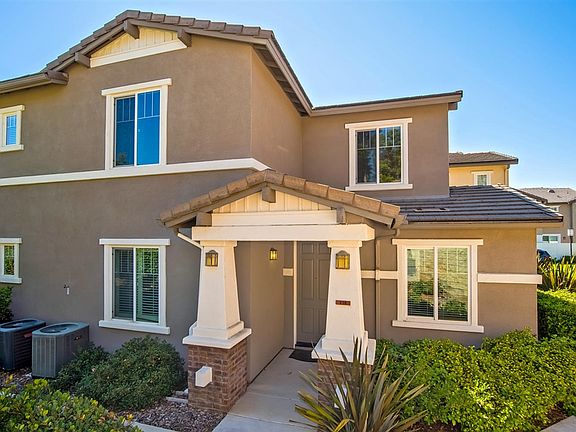 Fantastic location near Cal State San Marcos, restaurants, freeway & variety of shopping. Immaculate with newer carpet, paint and crown molding, AC, Fireplace. Gorgeous tile throughout downstairs living area, main level office could be a bedroom with full bath. Spacious kitchen with granite counters, center island, eating area, laundry room and patio. Epoxy floors in 2 car garage. Wonderful open & bright floor plan. This is so much home for the money!