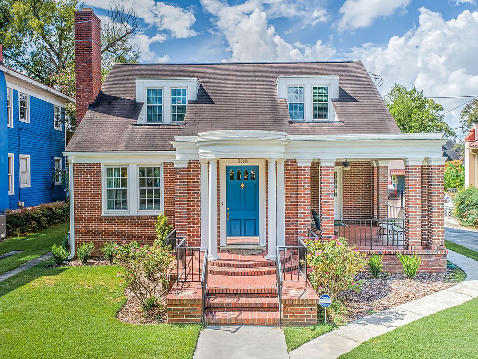 338 Broad Street in the Olde Town Historic District of Downtown Augusta, is a rare gem awaiting your ownership. Built in 1941, this brick cottage-style bungalow is full of history. It is known to many as the ''Mayor's House'' once owned by Former Mayor Charles Devaney and his family. What may appear compact from the outside unfolds into a spacious family home once you enter from brick stoop through the stately blue front door off Broad Street. This well-maintained historic home, with over 3,000 square feet, offers 4 bedrooms and 2 full bathrooms, seamlessly blending historic charm with modern comfort.
