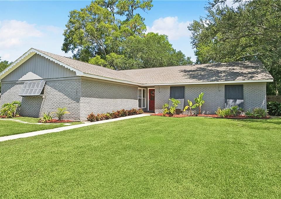 Move-in ready and full of thoughtful upgrades, this 3-bed, 2-bath brick beauty sits on a spacious corner lot in Slidell’s longtime premier neighborhood, Country Club subdivision. Known for its quiet, closed-end layout with no through traffic and pedestrian-friendly streets, it’s a peaceful spot just steps from Pinewood Country Club. You’ve got golf, tennis, swimming, and social events right across the street without the noise or traffic you'd expect. Inside, you’ll find 1,851 sq ft of updated, comfortable living. The oversized living room features warm wood-style floors and a charming double-arched brick fireplace with a built-in beverage fridge. The kitchen was renovated in 2015 and includes dark cabinetry, modern appliances (all stay), a striking backsplash, and plenty of space to cook and entertain. The breakfast nook and formal dining area give you options for casual or sit-down meals. All bedrooms and the den have brand new carpet, and the home is pre-wired for ADT security, video and stereo in the living room and all three bedrooms. The primary suite is your retreat with double closets and a renovated en suite bath featuring bold blue tile in the walk-in shower, a wide vanity, and a sliding barn door to save space. Outside, enjoy a fully fenced backyard with camellias, azaleas, and mature landscaping. The covered patio is wired for stereo and TV and has pull-down shades, perfect for morning coffee or entertaining guests. There’s also a two-car garage, an oversized driveway, and a washer and dryer included. This home checks every box: location, comfort, space, and updates. Schedule a showing and come see it for yourself!