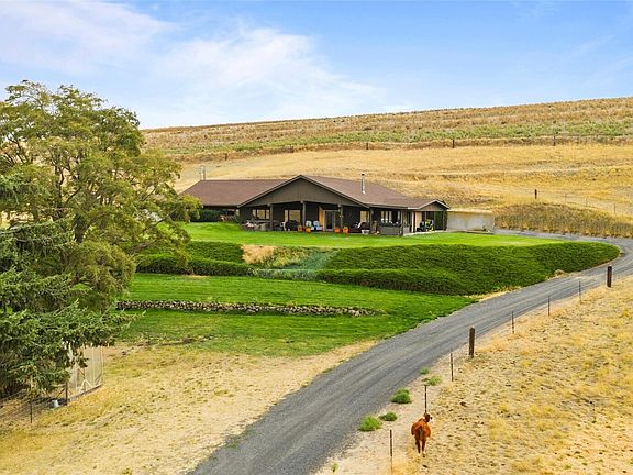 Tucked on 6 secluded acres with no neighbors in sight, this 2,500 sq ft single-level home offers 3 beds, 3 full baths, and spacious living throughout. The open kitchen with eating space flows into both dining and family rooms, while a utility room and attached garage add everyday convenience. A wraparound covered porch takes in wide-open views, perfect for year-round enjoyment. Recent updates include a brand-new roof, fire protection sprinkler system, fencing, new big shop door, interior sliding door. Outside, a massive 2,500+ sq ft shop, additional shop, machine shed, and RV parking set this property apart. You couldn’t buy the land and rebuild these improvements for this price—making it an unbeatable value! Just 33 miles to Walla Walla.