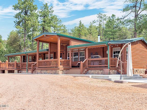 10 acres – No HOA This is one of the prettiest highly desirable places in the state, and the high elevation (over 6000 ft) makes the summers much more comfortable than the Phoenix valley while also being able to enjoy mild winters. Imagine waking up and peeking out your window and seeing the elk grazing through the tall Ponderosa Pines in your front yard. Well, stop imagining and make it happen! This is an outdoor lovers paradise with acres of National Forest land bordering two sides. Log sided home has a spectacular covered Trex porch for entertaining or quiet enjoyment with the wildlife. Concrete patio extends to the garage with a hot tub to witness the wonderful sunsets! Beautiful well designed kitchen with a large island, granite counter tops, travertine flooring, custom cabinetry throughout, Wolf six-burner double oven/range, an additional electric oven, oversized Subzero double door refrigerator/freezer, glass fronted cabinetry, stainless steel farmers sink, two beverage refrigerators, and spacious walk-in pantry. Large family room with fireplace and both wood burning stove/electric heat. Master bathroom has travertine shower and a heated floor. If you don't want to exercise outdoors you have a room all to yourself with a treadmill, spin cycle, elliptical and weights. A detached oversized garage has a fantastic living area, ¾ bath, lots of cabinets, huge storage area & wood burning stove. Outstanding equine facilities include a 4-stall covered barn with a tack room, turnouts, and water. Barn is currently being used as a 4-vehicle carport. Next to the barn is a steel platform to for a birds-eye view of the forest. Working corrals have separated pens and water. Explore the landscape and wildlife, ride ATV/horses, or long hikes, the options are endless. Enjoy your time off work on YOUR property!