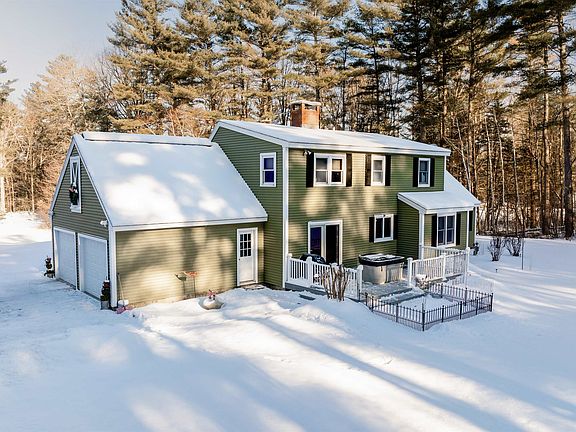 A Picture Book Setting. This move in ready 3 bedroom 3 bath 2200 square foot center chimney cape is located on 4.3 acres in the quaint town of Springfield and is walking distance to the beach at beautiful Lake Kolelemook. Close by is the town of New London, Sunapee ski resort for winter and summer recreation and I 89, New London Hospital and Dartmouth Medical Center. A large deck overlooks the manicured backyard with surrounding perennial gardens while new landscaping and a walkway compliment the front yard. The interior is freshly painted and the kitchen and baths updated. French doors lead from the dining area to the deck and a refinished wide pine floor awaits you in the den, conveniently located off the kitchen area. The cozy family room centers on a large brick fireplace with a new wood stove insert and the first floor primary suite with vaulted ceilings anchors the east side of the house. The laundry and mud room complete the first floor. There are 2 generous sized bedrooms and a shared bath on the second floor, a cedar closet and a walk-in attic. Additional ample storage can be found in the full basement. The attached 2 car garage features an epoxy floor and the home is wired for a generator. Defining features of this property include a 3 stall barn with electricity and water with perimeter fencing, shed and 2 outbuildings. This is truly a home for all reasons and all seasons and a place where you will feel connected to and grateful to return.