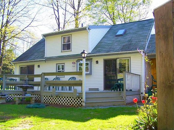 How do you count the ways you can use this property? First, it is a sweet traditional cape floor plan with an exciting 11x26 master bedroom. Big enough for private getaway with the bonus of being on the first floor. THEN you have home business potential, art studio (sculptors will love the high ceilings), wide open spaces for dance or yoga, day care, storage for big people toys, lots and lots of uses for the outbuildings! Step thru the sliders onto the very private back deck and enjoy gardening or just kick back. A must see for the adventurous or the stay at home put your feet up kind of buyer.