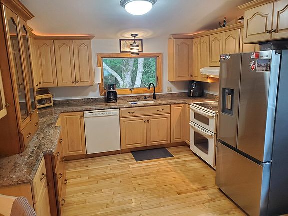 Simply gorgeous describes this sprawling ranch with separate income producing accessory dwelling unit generating $1,500 a month, or use as In-law for extended family. This beautiful home with an open concept design consists of 7 rooms, 3 bedrooms, and a full bath. Spacious kitchen with custom maple cabinetry & granite countertops, gleaming hardwood floors, large dining area, living room with pellet stove. Light & bright entry room currently used as den with custom doors leading out to private patio. Huge primary bedroom with sliders leading out to private deck, as well as 2 additional bedrooms. The oversized attached 2 car garage comes complete with 576 sq ft of loft space on 2nd level ready to be finished. Beautiful accessory unit/in-law comes complete with fully appliance kitchen with granite countertops, dining area, living room, bedroom, full bath. Washer/dryer hookups, private entrance, private patio, and separate driveway. Perfect for rental income or In-law/extended family. Generac back up power generator, newer windows and doors throughout, 220 amp service, custom seamless gutters throughout home, newer roof, and more. Step outside to a beautiful, sprawling 2+ acre private oasis with custom stone steps leading to babbling brook, gardens, & mature landscaping that will take your breath away. Beautiful country setting, but a commuters dream just minutes to highways and downtown Manchester. This is truly a must see property!
